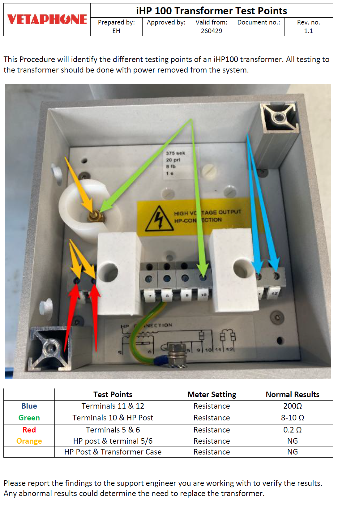 iHP100 Transformer Test Points Print